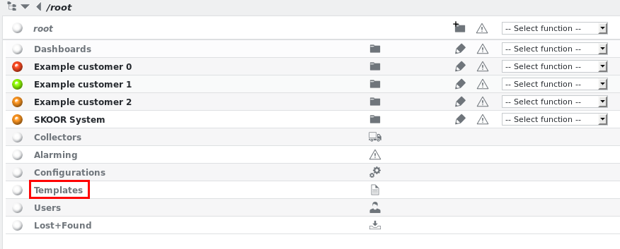 Lavori, dispositivi, gruppi e SLO possono essere configurati come modelli in /root/Templates/. Utilizzando questi modelli, è possibile creare facilmente istanze multiple. Una modifica della configurazione del modello ha effetto immediato su tutte le istanze collegate. Grazie a questa funzionalità aggiuntiva è possibile ottenere un significativo aumento dell'efficienza per l'implementazione di massa. Ad esempio, i modelli di dispositivo possono contenere lavori figli che vengono creati insieme a un'istanza del dispositivo. In questo modo, è possibile creare con pochi clic un nuovo dispositivo identico o simile a un modello di dispositivo, compresi tutti i lavori figli.